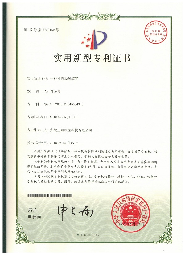 實用新型專利證書