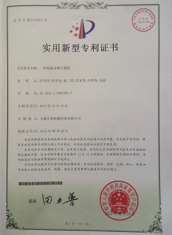 實(shí)用新型專利證書
