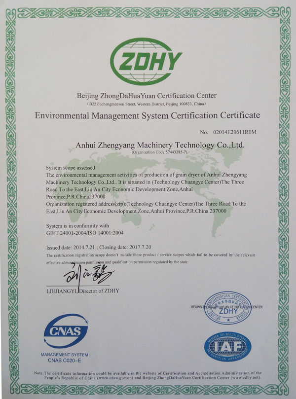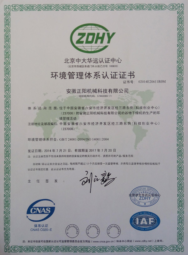 環(huán)境管理體系認(rèn)證證書